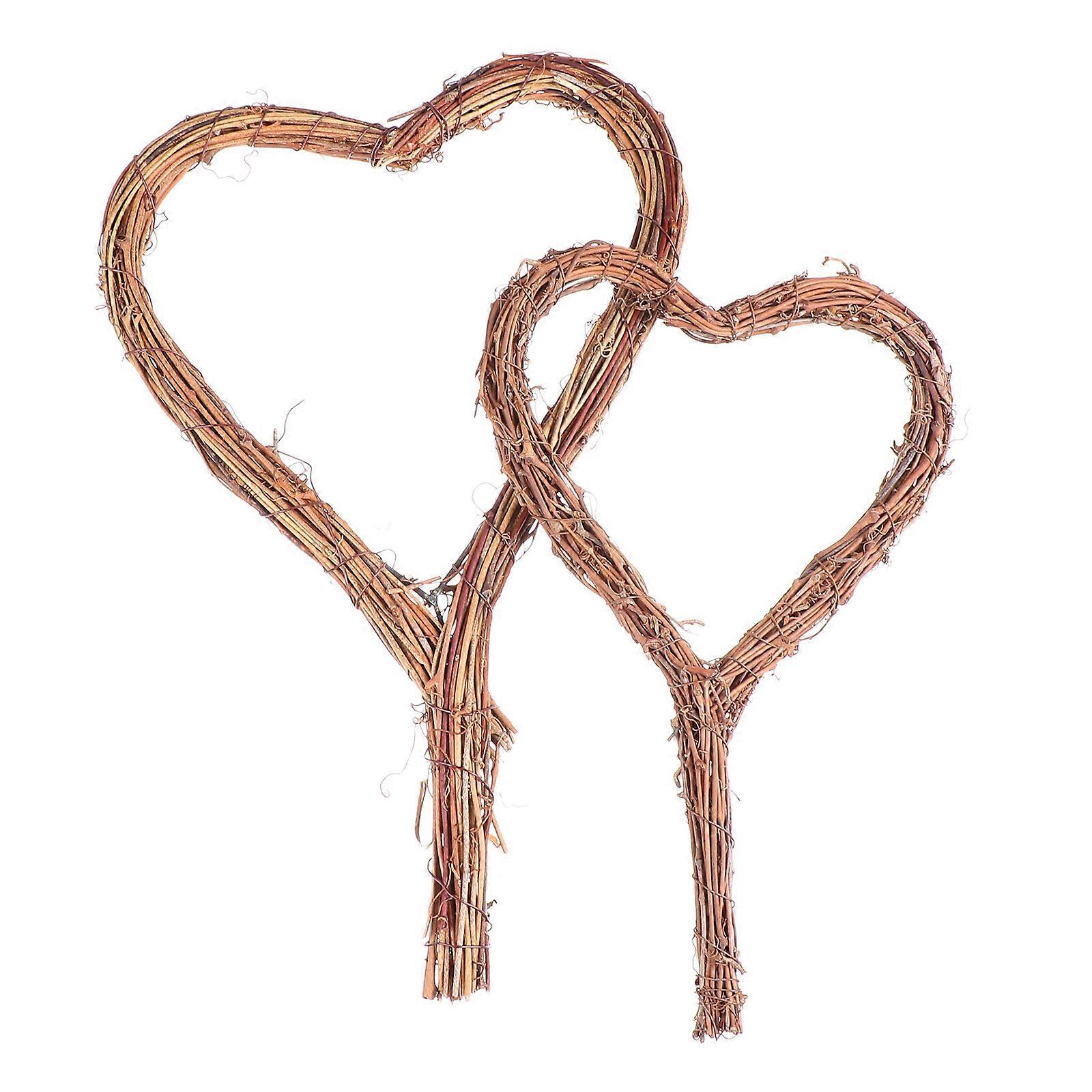Valentine's Day Heart Wreath Frame Rattan Heart Wreaths Home Garden Decoration Light Brown 32.00X20.00X1.00CM DIY 2Pcs