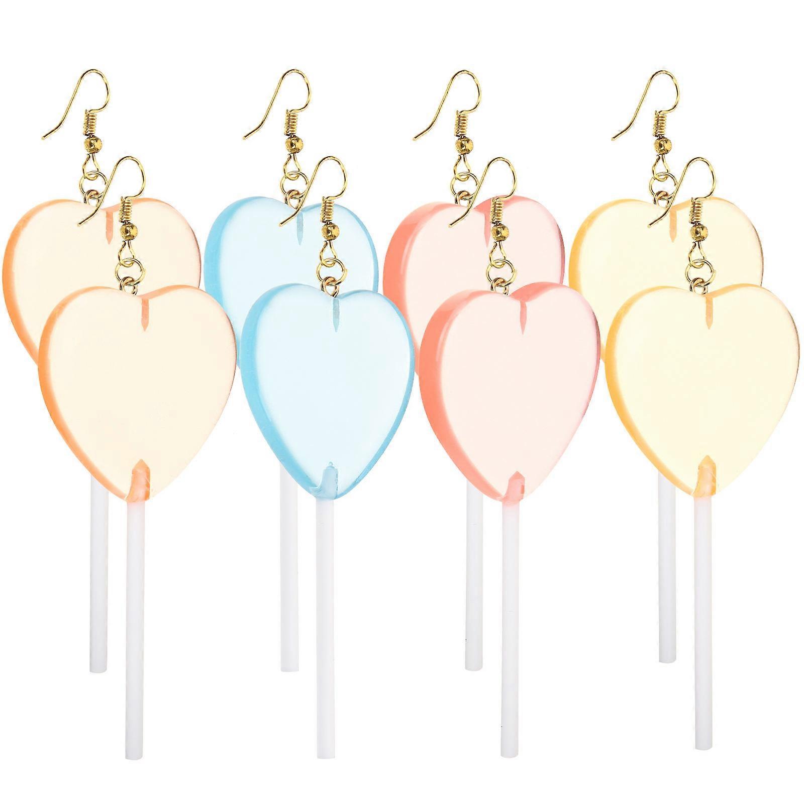 Valentines Day Heart Lollipop Earrings Pink Design 4Pairs