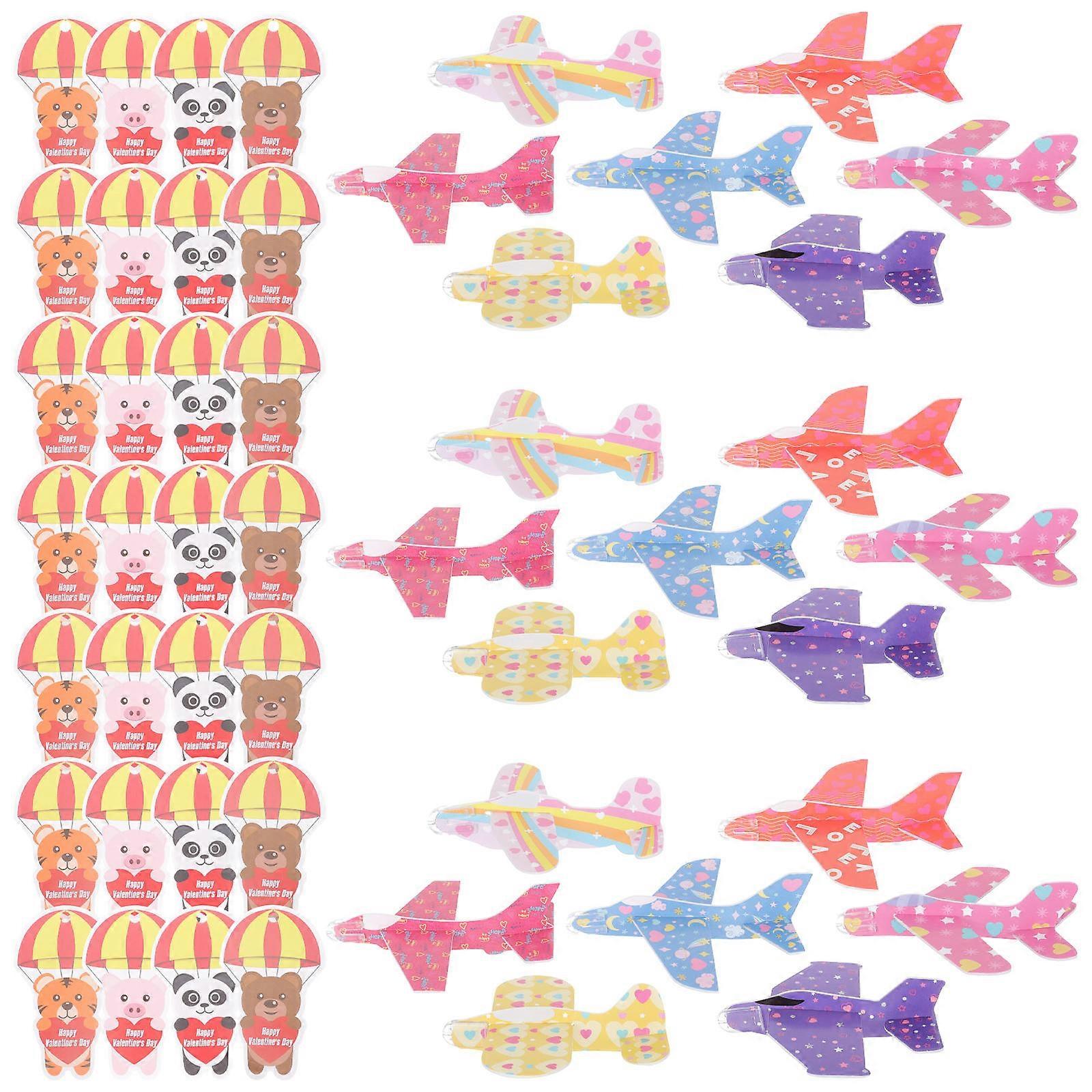 Valentine's Day Foams Airplanes Toy with Greeting Cards for Kids Classroom Exchange Gifts Assorted Color