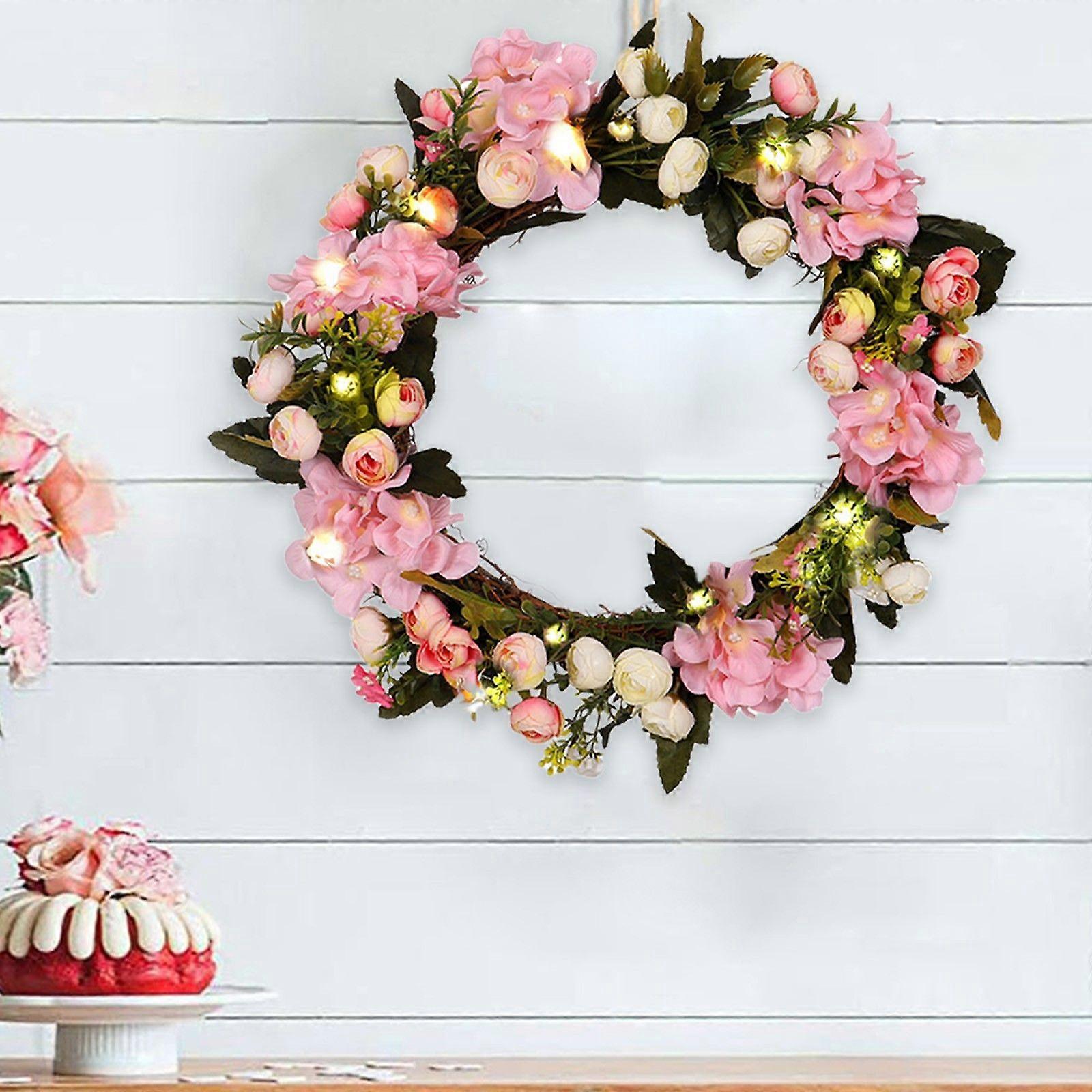 Valentines Day Wreath 15.7 Inch New Spring Artificial Rose Shaped Door Wreath Valentines Door Decor For Front Door Valentine's Day Decorations Party S