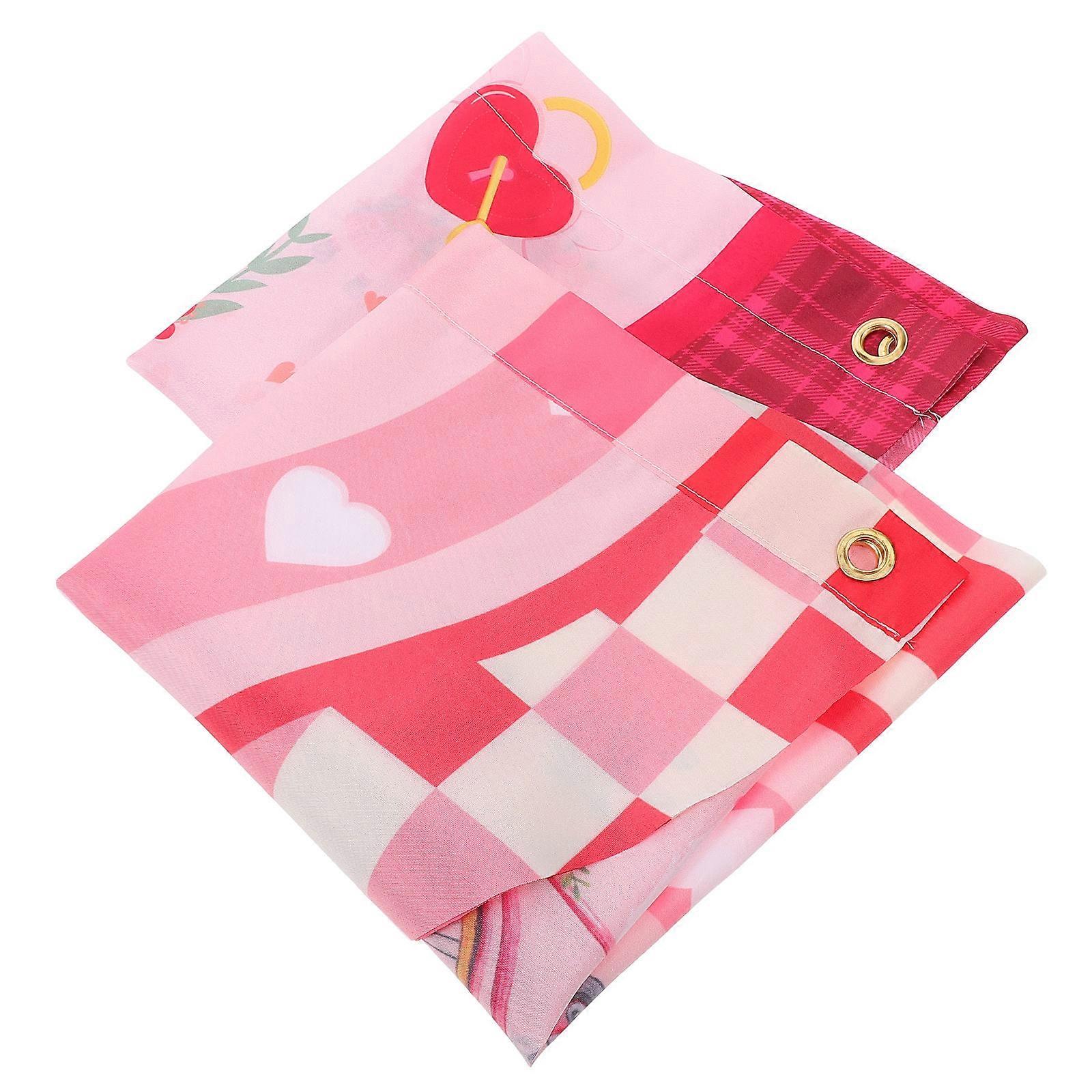 Valentine Gnome Yard Decor Heart Shaped Wedding Banner Pleated Half Fan Flag Hanging Bunting For Valentine Day Celebration 2Pcs