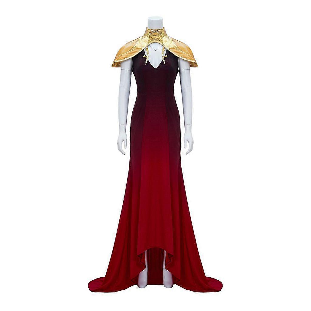 Baroque Vampire Princess Costume Long Red Gown with Golden Cape Gothic Cosplay Dress for Stage & Halloween