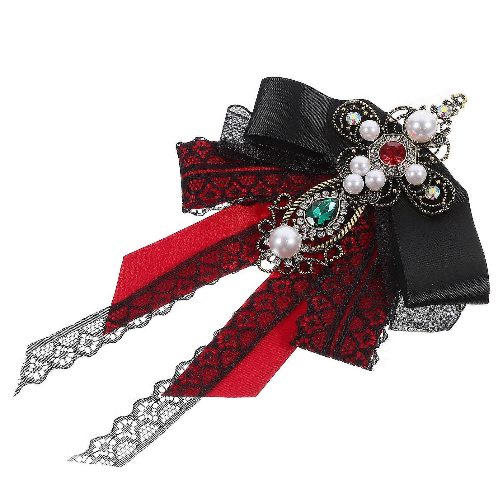 Baroque Style Large Bow Brooch Red Lace for Decoration 3Pcs