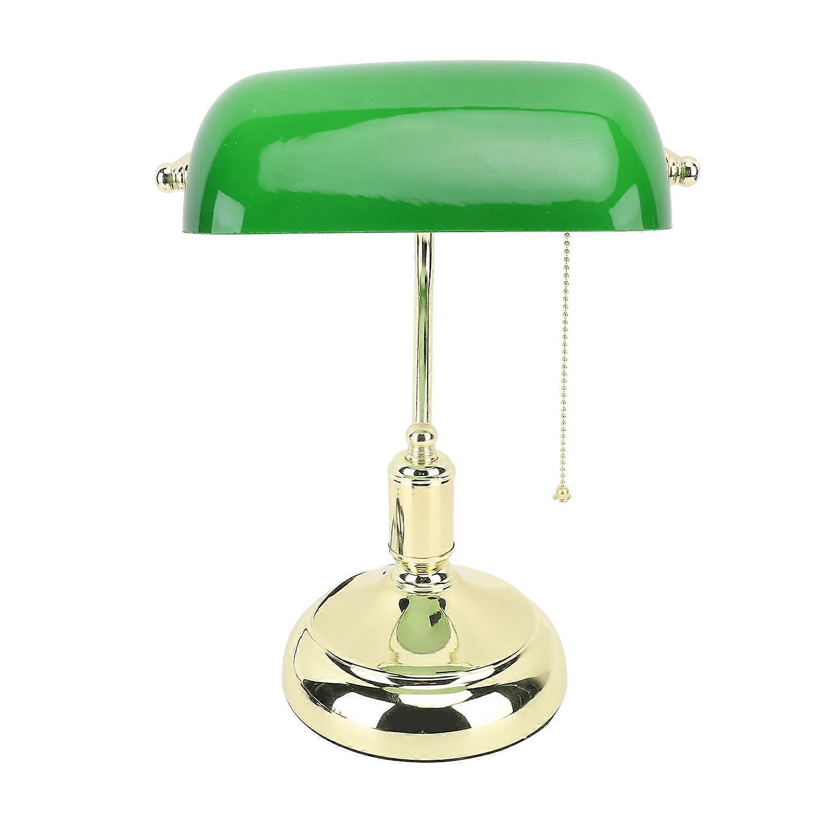 Bankers Lamp Green Glass Lampshade Warm Desk Vintage Library Lamp with Pull Chain Switch Iron Base E26 Holder for Office