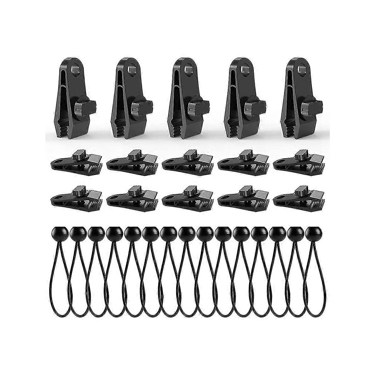 Tarp Clips With Bungee Balls 30 Pcs,tarp Clips Clamp Heavy Duty Lock Grip For Tarp,pool Cover,rv Awning Cover