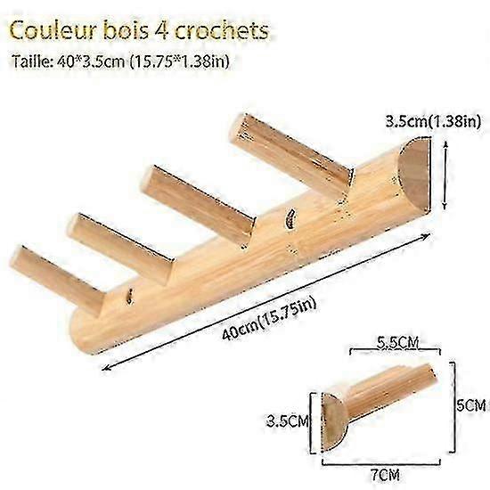 Bamboo Coat Hanger Hook Single Clothes Hanger Hanger Bag Holder Clothes Rack - 4 Hooks