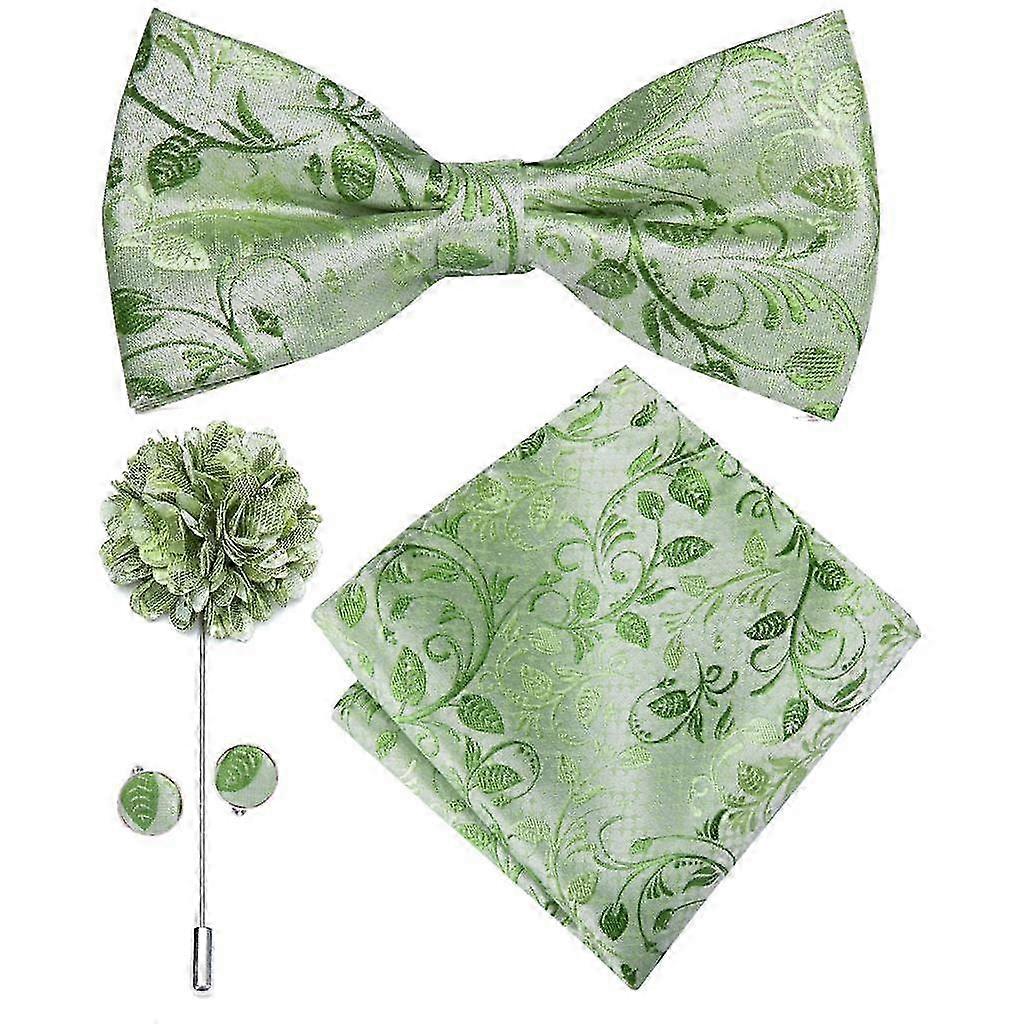 Burgundy Silk Bow Tie Set with Pocket Square Cufflinks and Brooch for Men Wedding Groomsmen Accessories