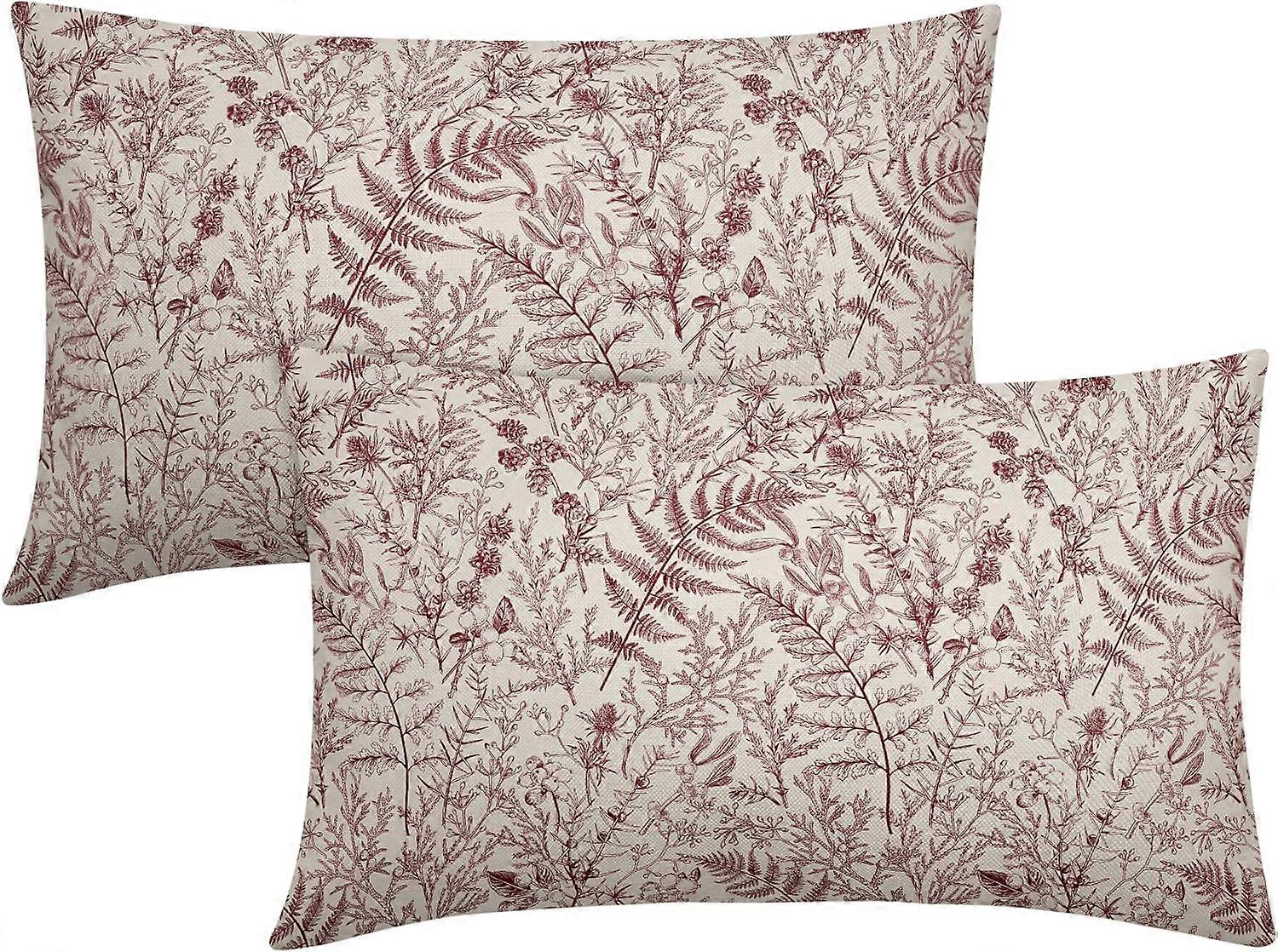 Burgundy Red Fern Leaves Lumbar Pillow Covers 12X20 in Plant Leaf Floral Pine Decorative Pillow Cases Vintage Botanical Spring Summer Throw Pillows Se