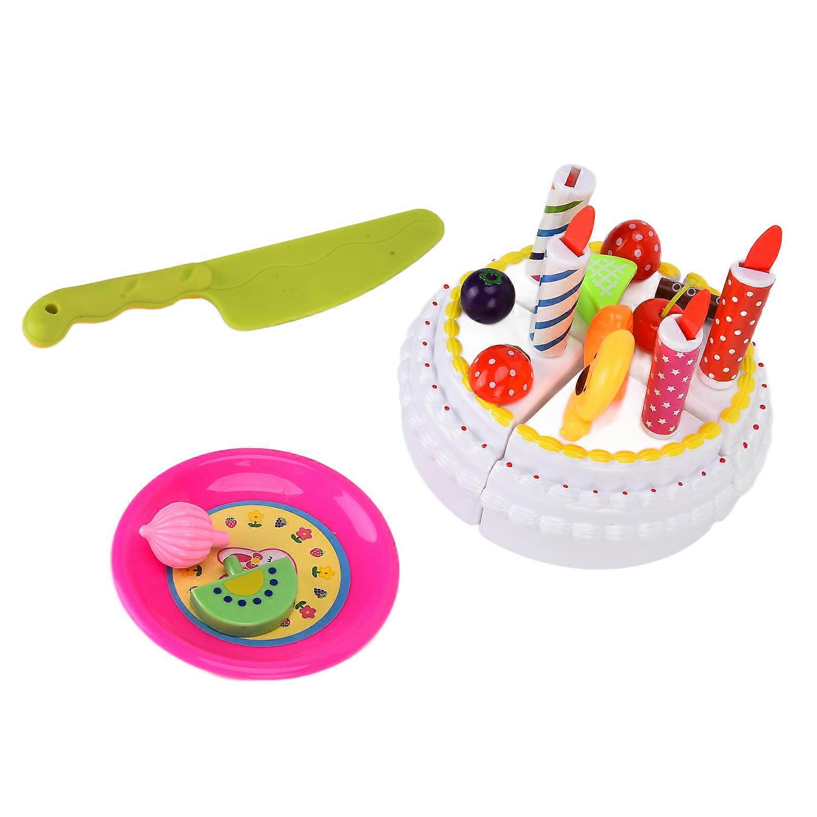 Item Type: Birthday Cake Toy Material: Plastic Applicable Age: For 3 Years Old + 1Premium Material: Made with durable thick high quality ABS plastic,non toxic. Meet US toy standard. Safety test approved. 2Learning: Pretend toys help develop your kid's language skills by learning the names of different fruit, dessert, and tools. Fun and colorful celebrate play. 3Better Communication: This DIY cake dessert set can help children's emotional development, helps improve communication and language ability. 4Fine Crafts: Cake realistic shape, fine workmanship. Cake easily separated, detachable, easy to use. 5Ideal Presents for Kids: A great gift for children to gain useful knowledge in the game. That's really funny! 4 x Candle 1 x Knife 1 x Plate 4 x Cake 10 x All Kinds Of Fruit