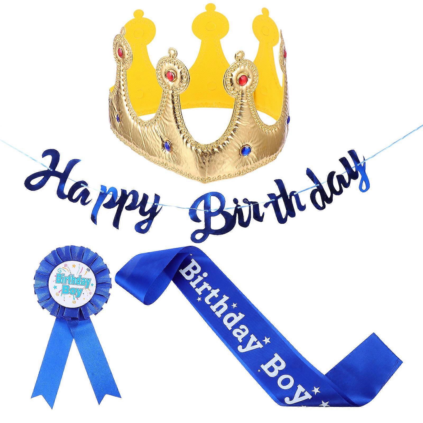 Birthday Sashes and Crowns Blue 160x9.5cm Party Accessories for Boys 1Set