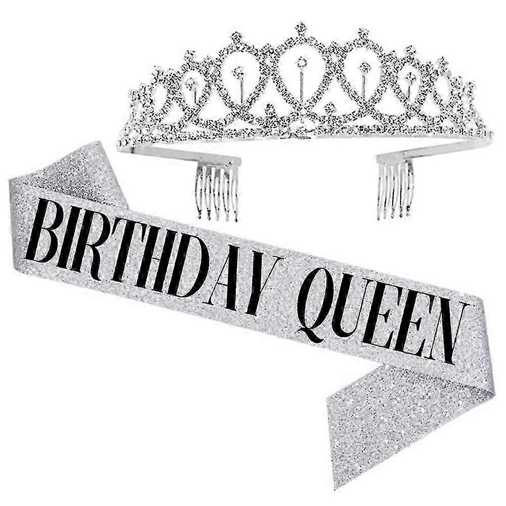 Birthday Party Tiara & Shoulder Strap Set - QUEEN Silver