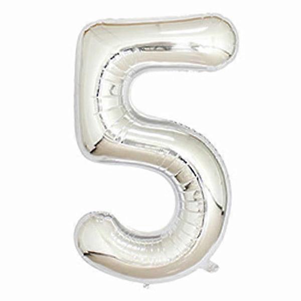 Large Silver Number Balloon for Birthday Party 102cm - 5 Silver