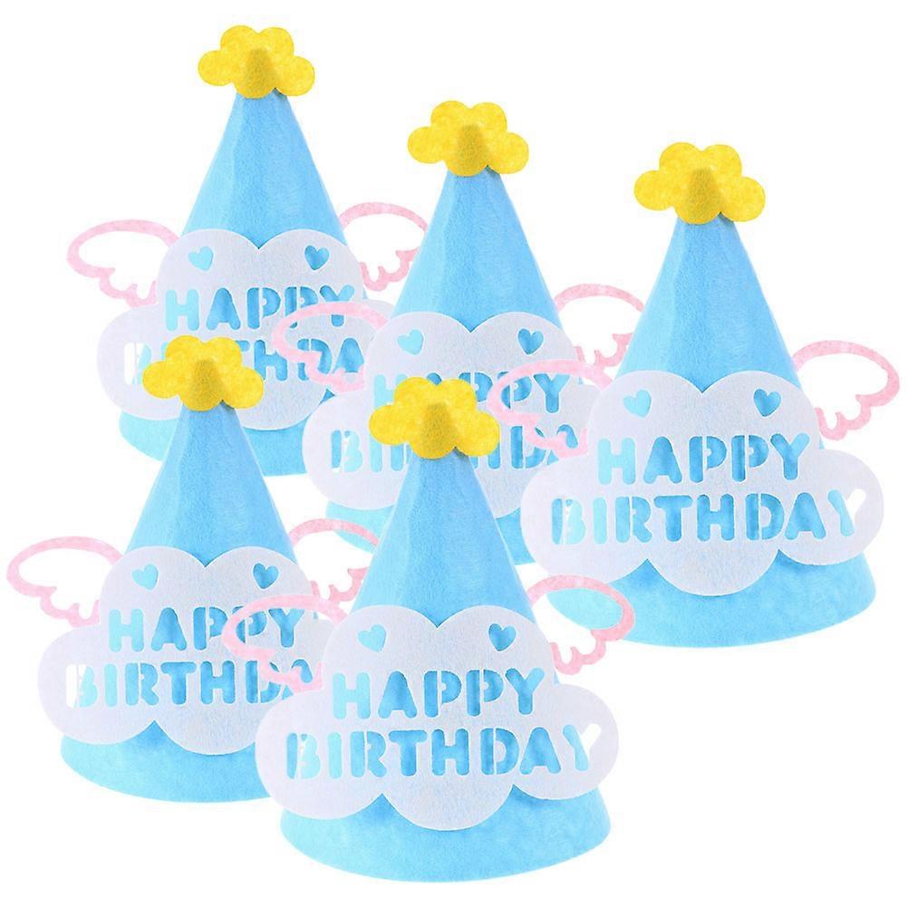 Birthday Hats Triangle Birthday Party Children Blue Nonwoven Fabric Photo Accessory 5Pcs