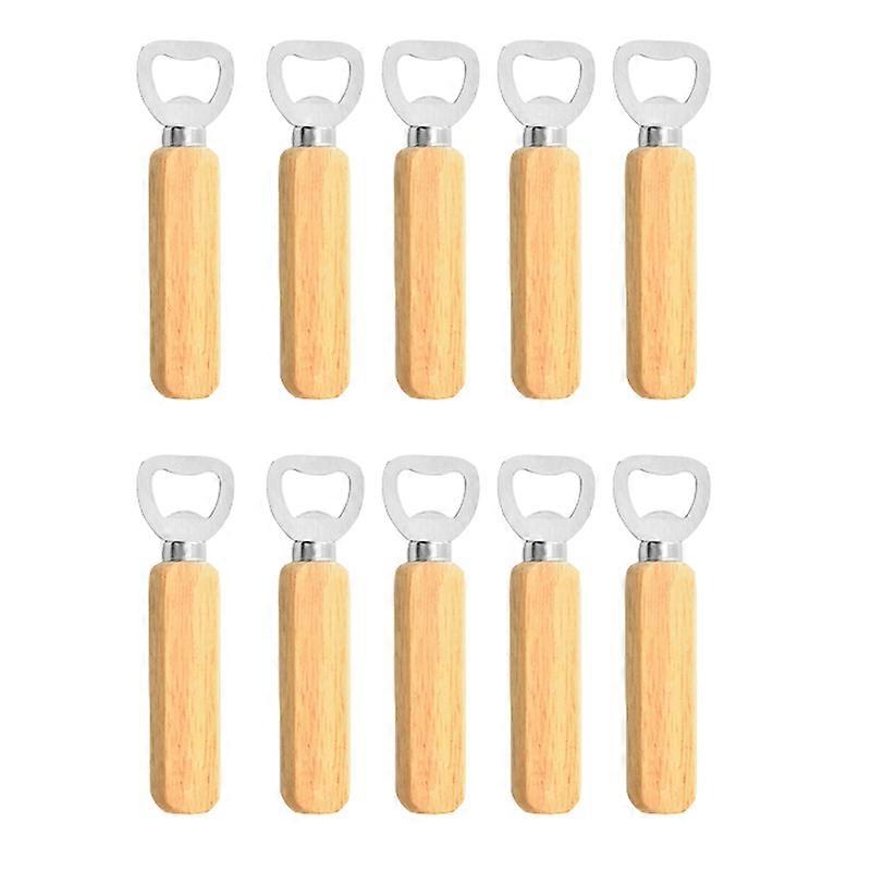 Bartender Bottle Opener Rubber Wood Handheld Wine Beer(10 pcs, wood color)