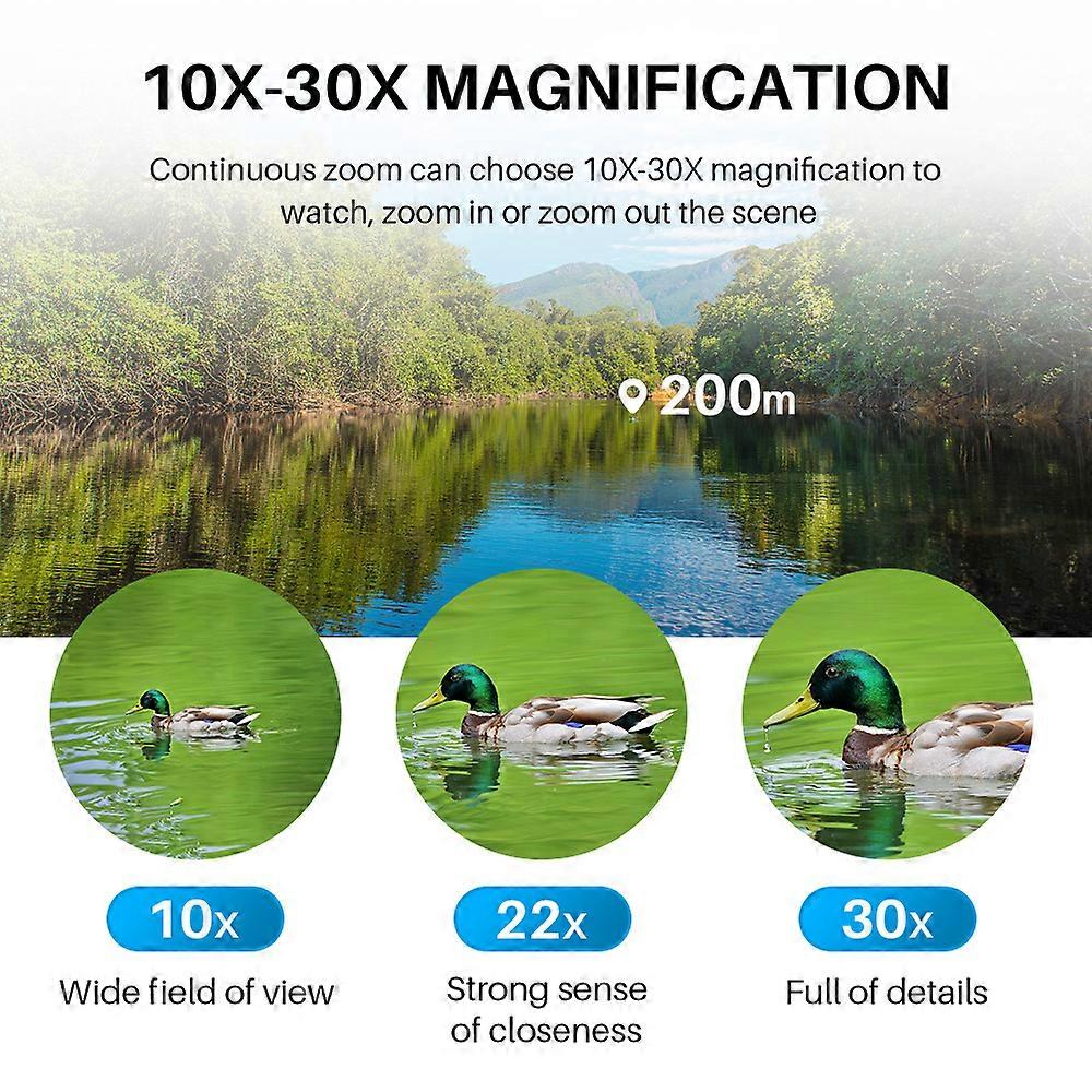 High Powered Zoom Binoculars: Featuring an impressive 10X-30X adjustable magnification and a 50mm large objective lens, these binoculars bring distant scenes closer and provide high-resolution images with accurate color reproduction. Whether you're birdwatching or attending a sports event, enjoy a crystal-clear view.