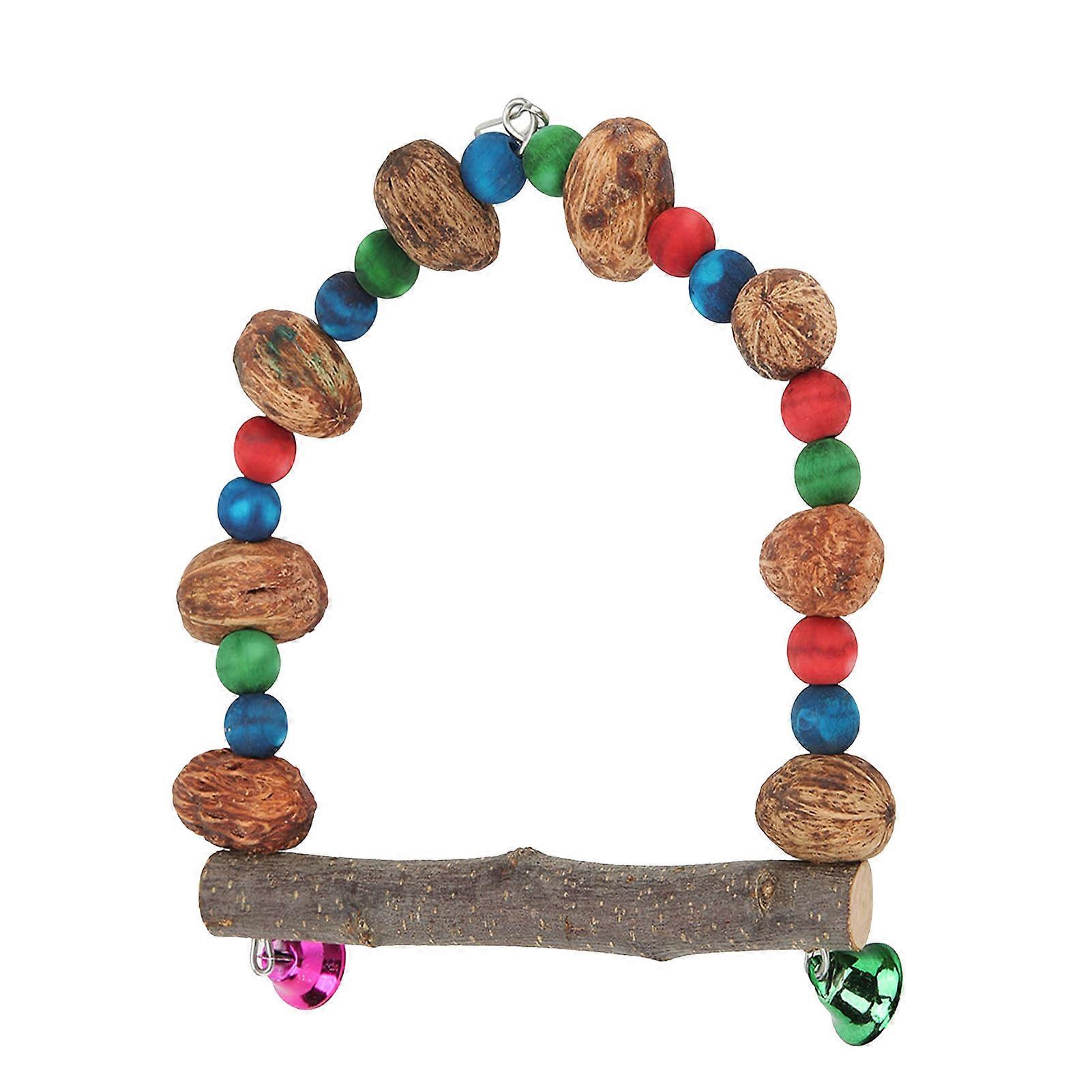 Bird Swing Toy Wooden Colorful Pecans Healthy Hanging Bird Perch with Bells for Parakeet CockatielS