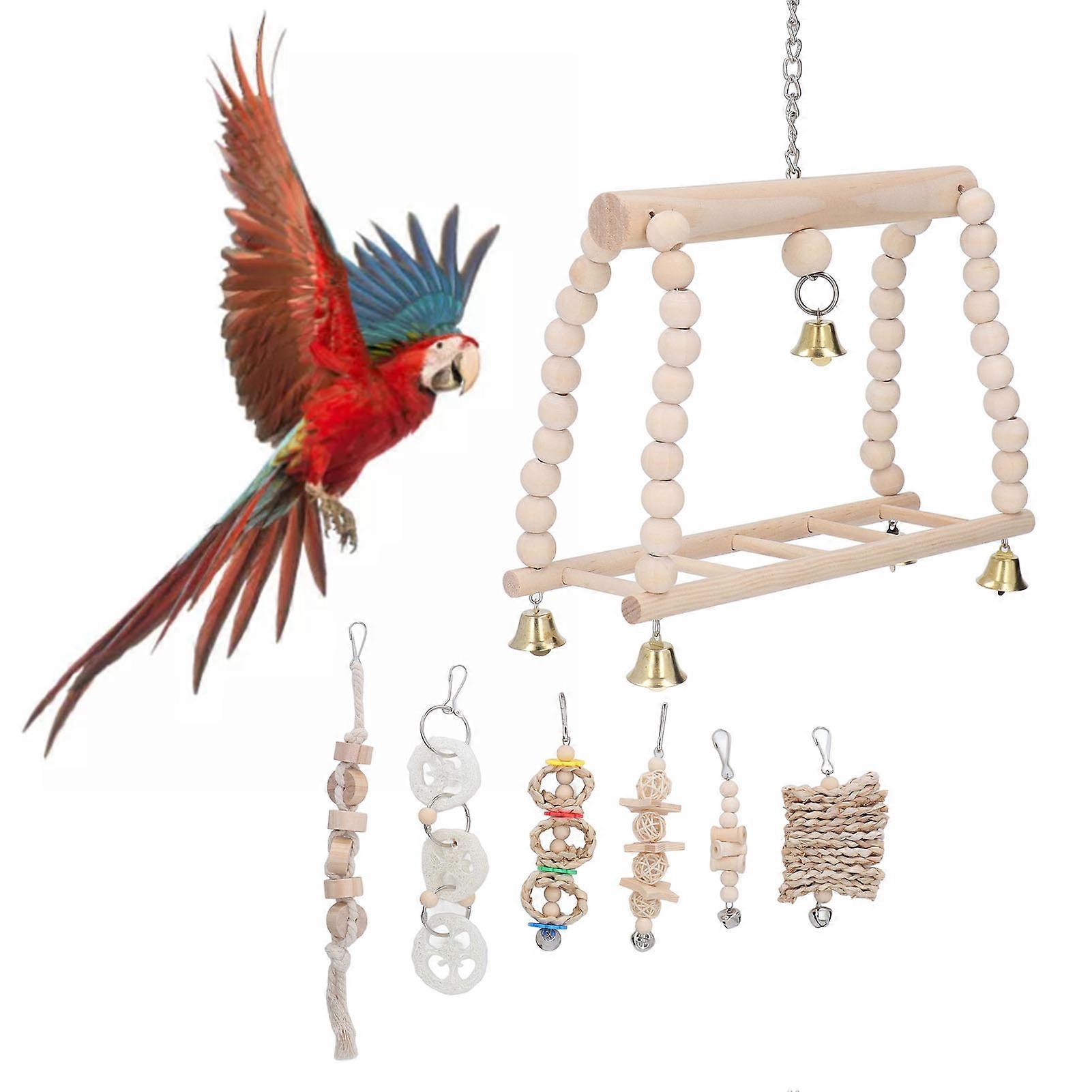Bird Swing Chewing Toys Hanging Bell Pinewood Climbing Ladder Birdcage Accessories Toys for Cockatiels Conures Finches