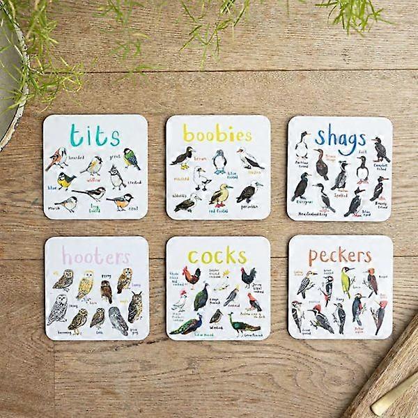 Set of 6 Bird Pun Coasters, Funny Drink Coasters, Coaster Set of 6 for Table Protection, Bar, Housewarming Gifts, Coffee
