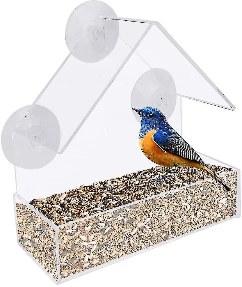 Bird Feeder Clear Acrylic Bird Feeder Rainproof Bird Feeder Removable Sliding Feeding Tray With 3 Suction Cups Bird Feeder