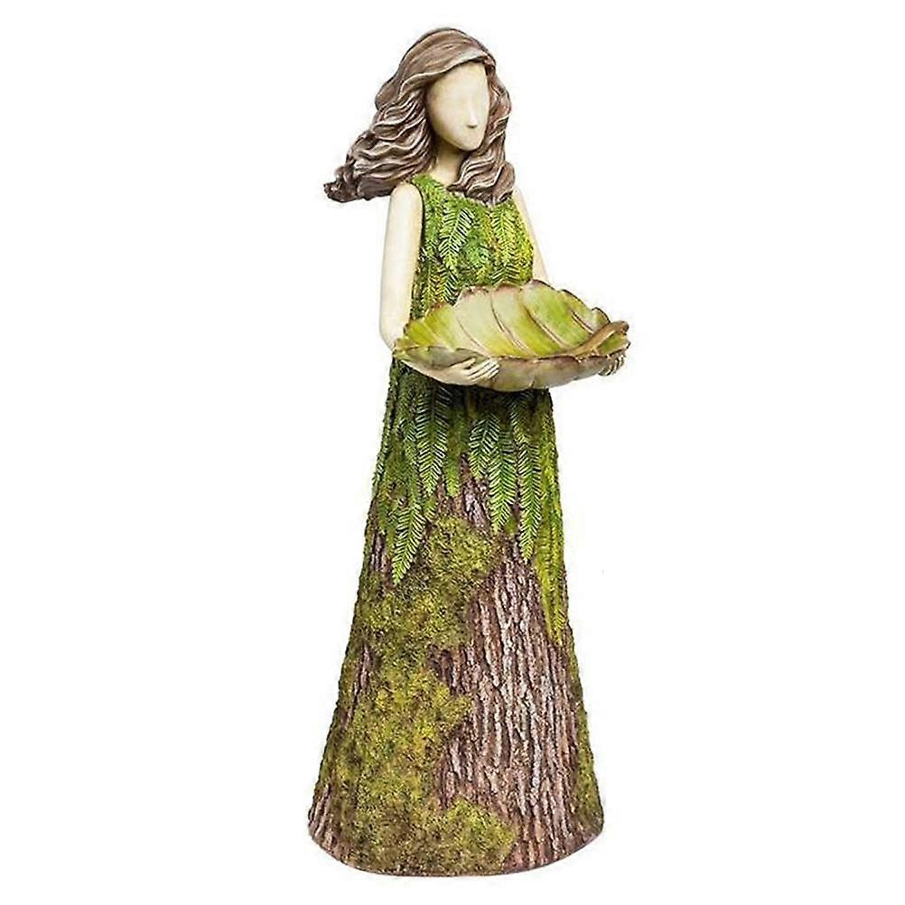 Fairy Garden Statue with Bird Feeder Lawn Resin Ornaments Garden Art Sculptures for Outdoor Decorations