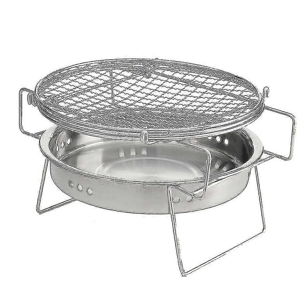 Bbq Grill Foldable Stainless Steel Portable Round Barbecue Stove With Storage Bag For Camping Patio Outdoor Activity Auspicious