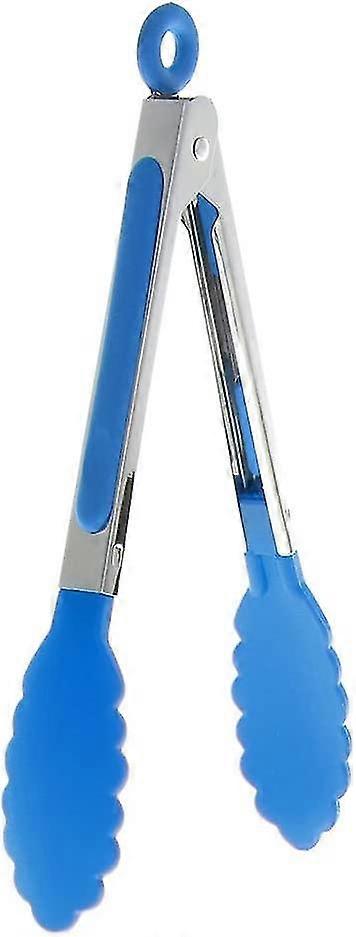 Barbecue Tongs Silicone Cooking Food Service Barbecue Tongs Stainless Steel Handle Tool (blue) (1pcs)