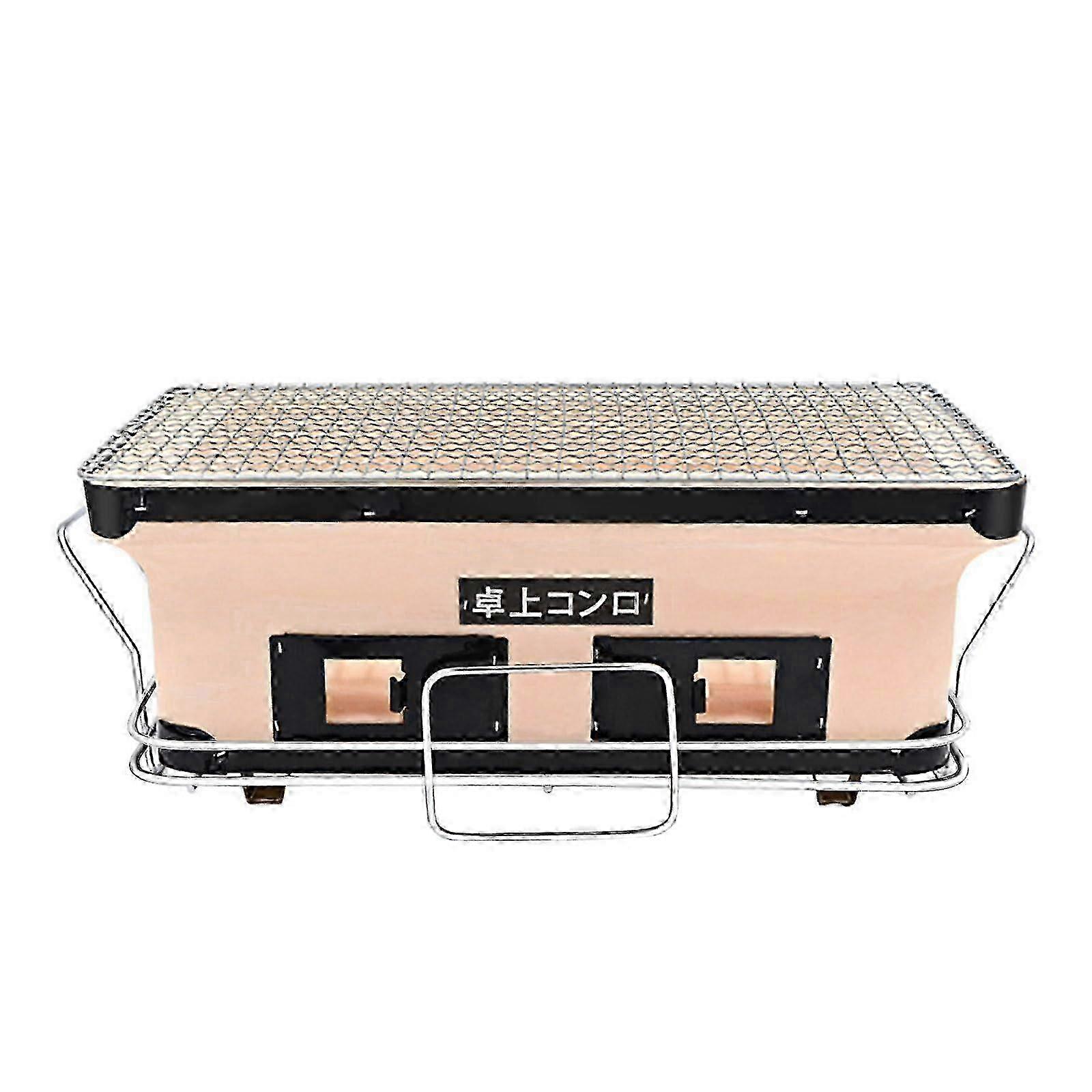 BBQ Charcoal Grill, Japanese Ceramic Clay BBQ Hibachi Grill Yakitori Stove with Food Tongs for Camping, Outdoor, Indoor, Beige