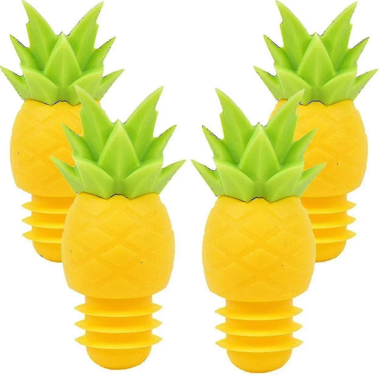 Pineapple Wine Corks Fun, Silicone Reusable Unbreakable Sealer Caps For Wine And Beer Corks, 4 Pack