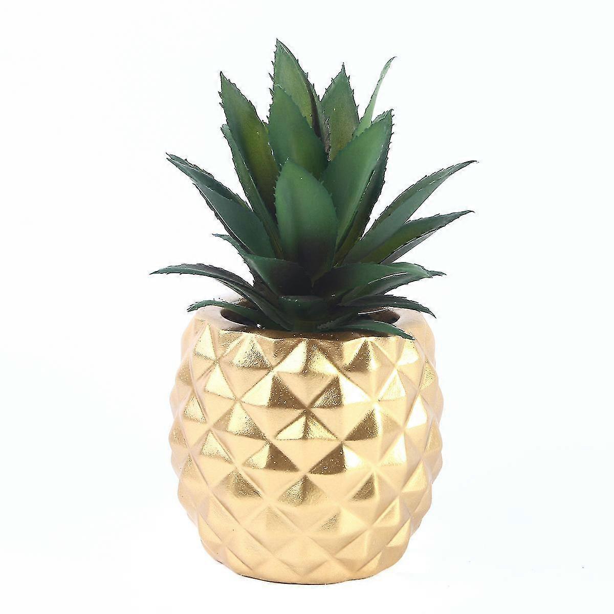 Pineapple Plant Ornamental, Artificial Potted Succulent Plants Set Faux Succulents In Pots Home Decor With Leaves