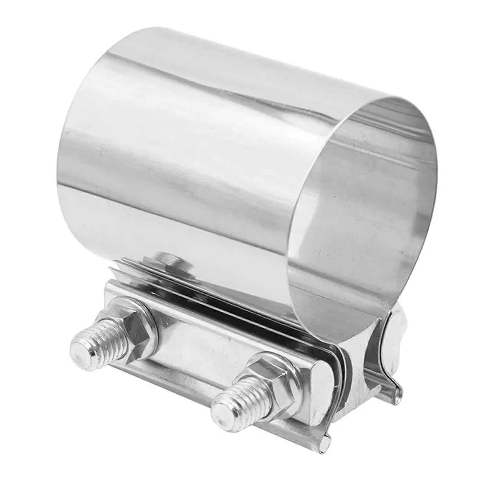 1. Effectively prevents deformation of the tailpipe due to temperatures, vibrations, or external impacts, thus extending the life of the exhaust system. 2. Thanks to its weld design, the exhaust clamp is quick, easy, and precise to install. Its arccurved surface prevents exhaust and noise leaks. The clamp is removable and reusable. 3. The reaction block ensures a 360° even distribution of expansion forces, prevents pipe deformation, and provides a tight seal for connected exhaust components. 4. The butt connection band clamp is a simple and effective solution for joining most exhaust pipes and muffler components. It can also be used for silencer repairs.