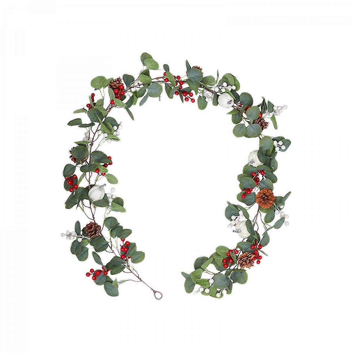 Indoor Christmas Garland with Pines, Cones & Red Berries - Xmas Fireplace & Wall Decoration, Green Leaves, Festive Party Decor