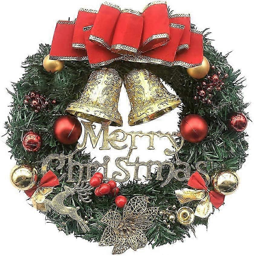 Artificial Christmas Wreath with Pine Design, 11.8 Inches, Hanging Garland with Bowknot, Bells, Deer & Flower Decorations for Front Doors & Parties