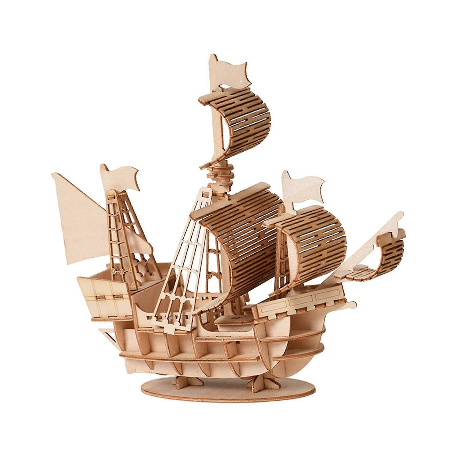 Puzzle Toy Interactive Toy Portable Assembly Game Wooden 3D Sailboat Puzzle