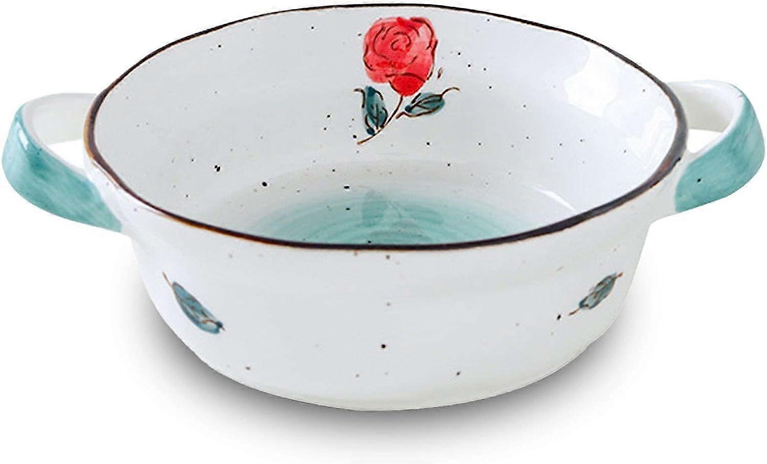Pasta Bowl Ceramic with Handle, 20x15x6 cm, 650 ml, Microwave Safe Breakfast, Cereal, Ramen, Soup Bowls, Rose Color