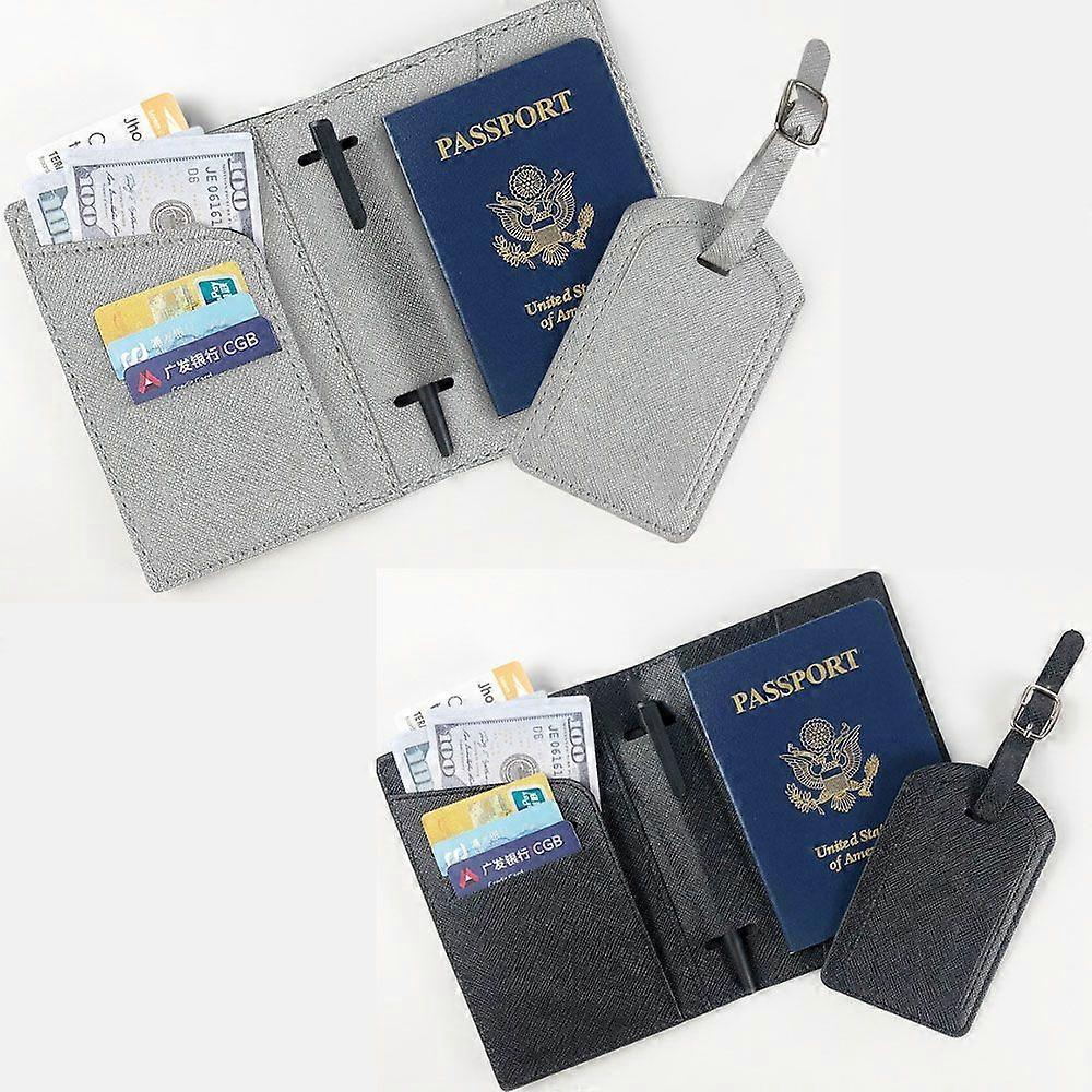 Passport Cover Set of 2 Faux Leather Passport Cover with 2 Luggage Tags Set, Travel Luggage Label and Passport Cover for Passport Prevention of Loss o