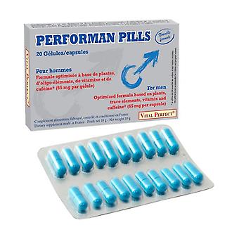 Vital Perfect Performan Píldoras 20 cápsulas es un complemento alimenticio formulado a base de plantas, oligoelementos y cafeína (65 mg por cápsula) para la sexualidad masculina.