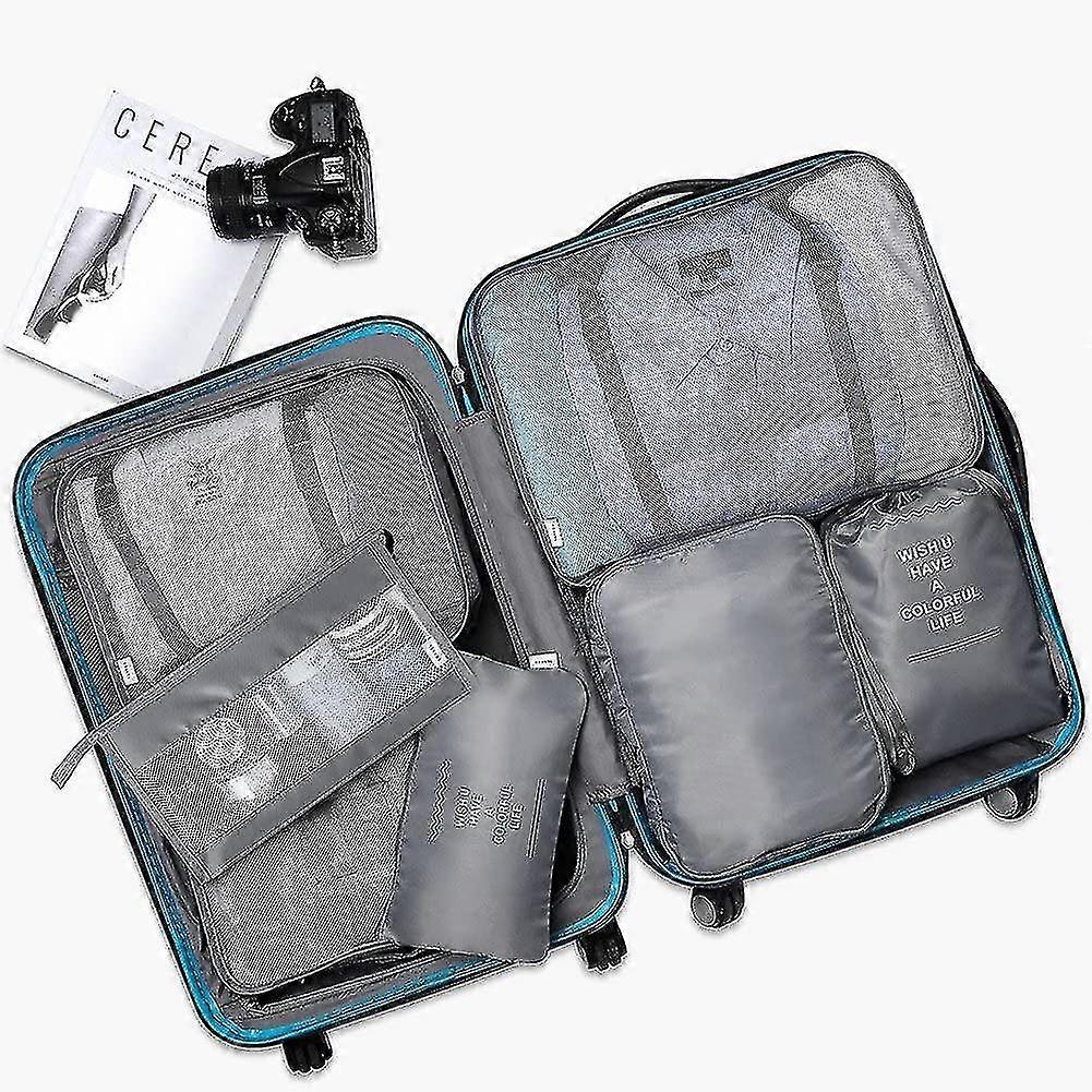 Packing Cubes Travel Luggage Packing Organizers Set With Toiletry Bag (7 Pcs)-Gray