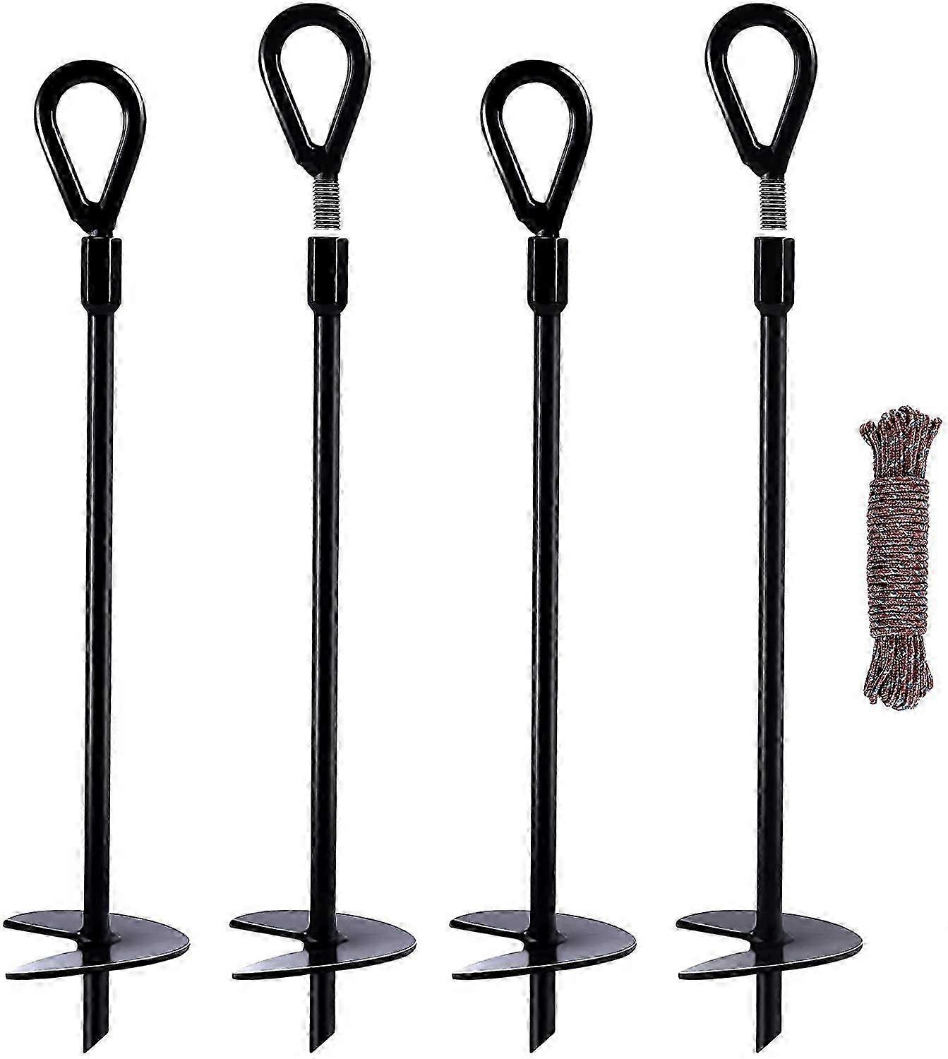 Pack Ground Anchor 15 Inch Heavy Duty Earth Augers Metal Anchor Hook Black Wind Stakes with 32 Feet of Rope for Canopies, Securing Animals, Tents, She