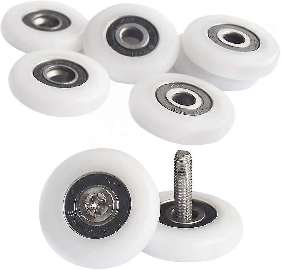 Material Plastic, Stainless steel, Acrylonitrile butadiene styrene Modern Style Item dimensions L x W x H 10 x 10 x 5 centimeters To ABOUT THIS ITEM HIGH QUALITY: High quality POM plastic. Adapts to different types of showers. Ensures your doors glide more comfortably No decompression and no wasted money: Did you buy a sliding system and it's broken? You think with horror that now you have to buy a new one. Forget There are replacement shower door rollers that will fit any sliding system in your home. If you're having trouble sliding shower doors, use this quick fix and don't waste your money Use anywhere: shower door slides for showers, massage cubicles, bathtubs, hot tubs and even for furniture accessories. Make sure the door or doors open easily and smoothly. Replace your broken system. Premium Shower Rollers Rolling Component: Smooth rolling of the door with a slight effortless forward or backward movement for shower enclosures, hydromassage boxes clearly perform the task assigned to them, distributes the mass of the glass, controls the movement in the given direction. This gives the product even more durability and a longer life Roller diameter: 25 mm. Interior: 5 mm and thickness: 5.5 mm. With M4 20mm length