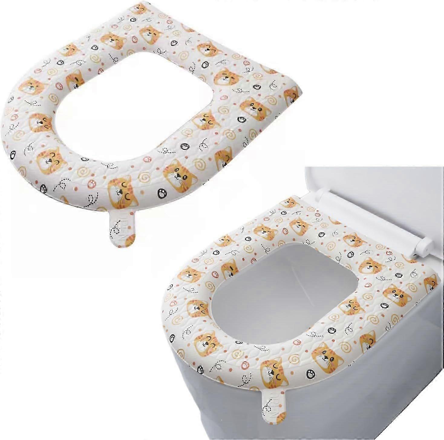 Pack Toilet Seat Cover, Toilet Seat Warmer, Elongated Toilet Seat Cover, Padded Cushion, Washable or Portable O-Shaped Toilet Tank Cover