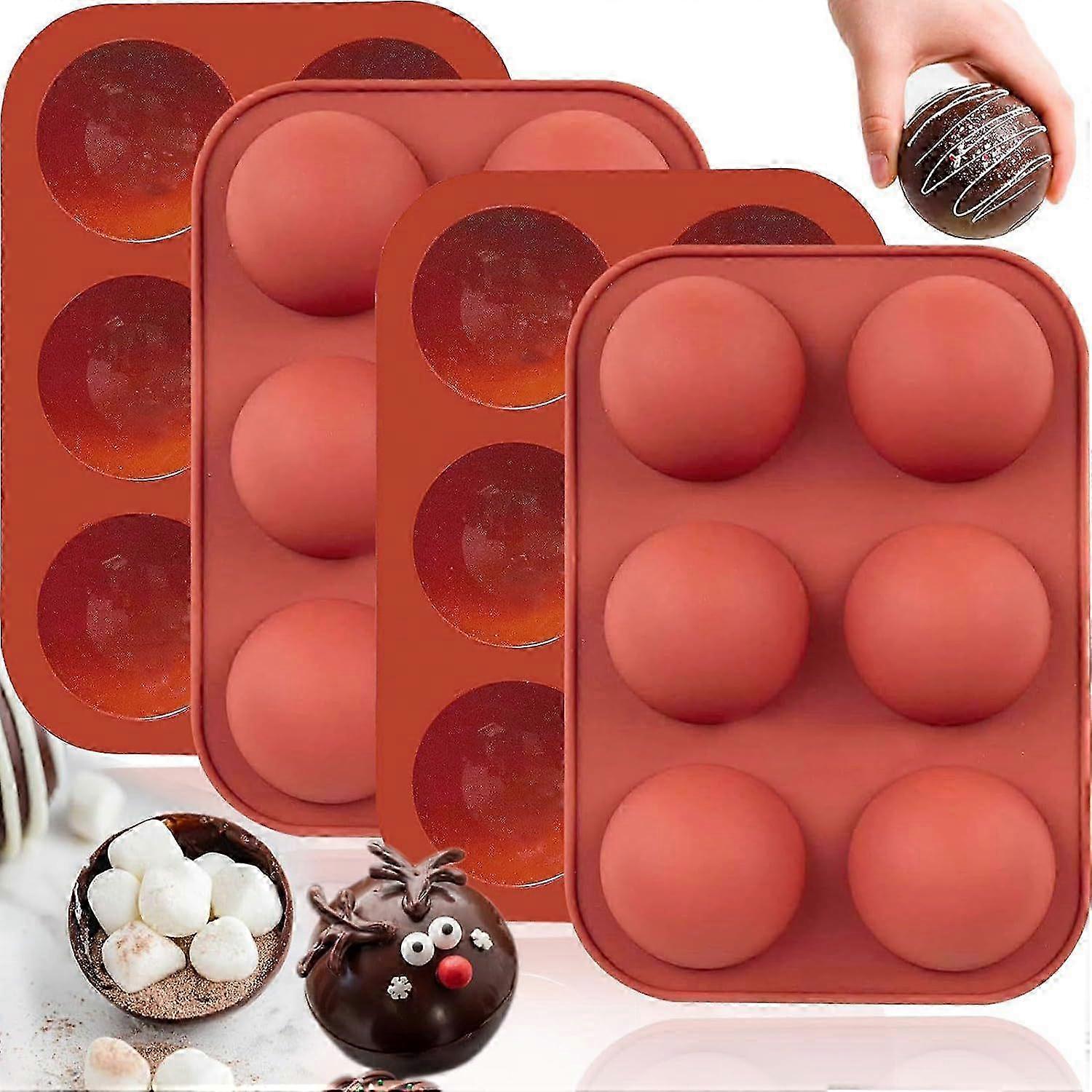 Pack 6 Holes Half Sphere Silicone Molds - Non-Stick Silicone Cake Mold for Jelly, Pudding, Candy, Chocolate - Brick Red--