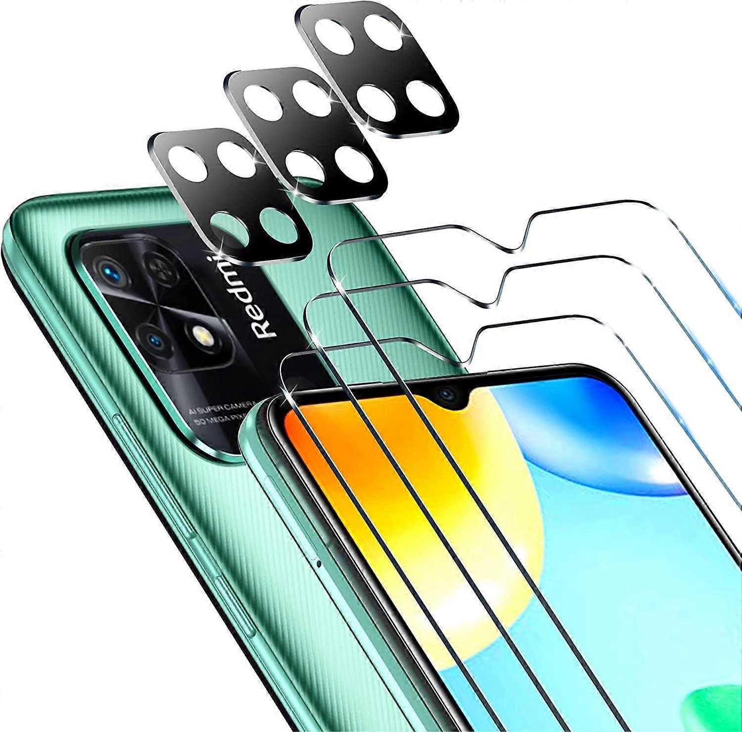Pack de 3 Film de Protection dcran en Verre Tremp pour Xiaomi Redmi 10C / Xiaomi Poco C40, avec 3 Pices Camra Arrire Protecteur, Duret 9H Glass, Anti