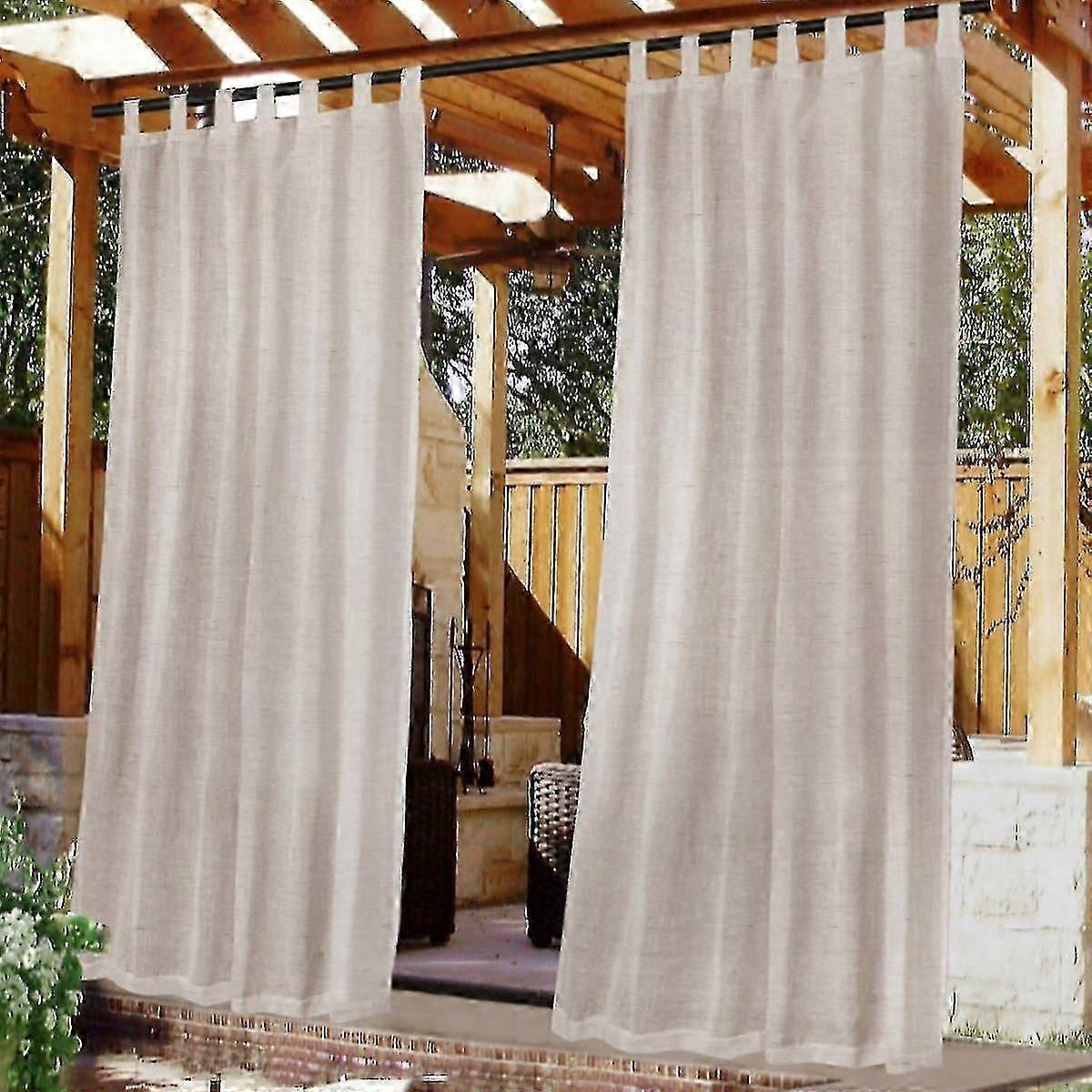 Natural Outdoor Sheer Curtains for Patio, Waterproof Linen with Detachable Self-Adhesive Tabs