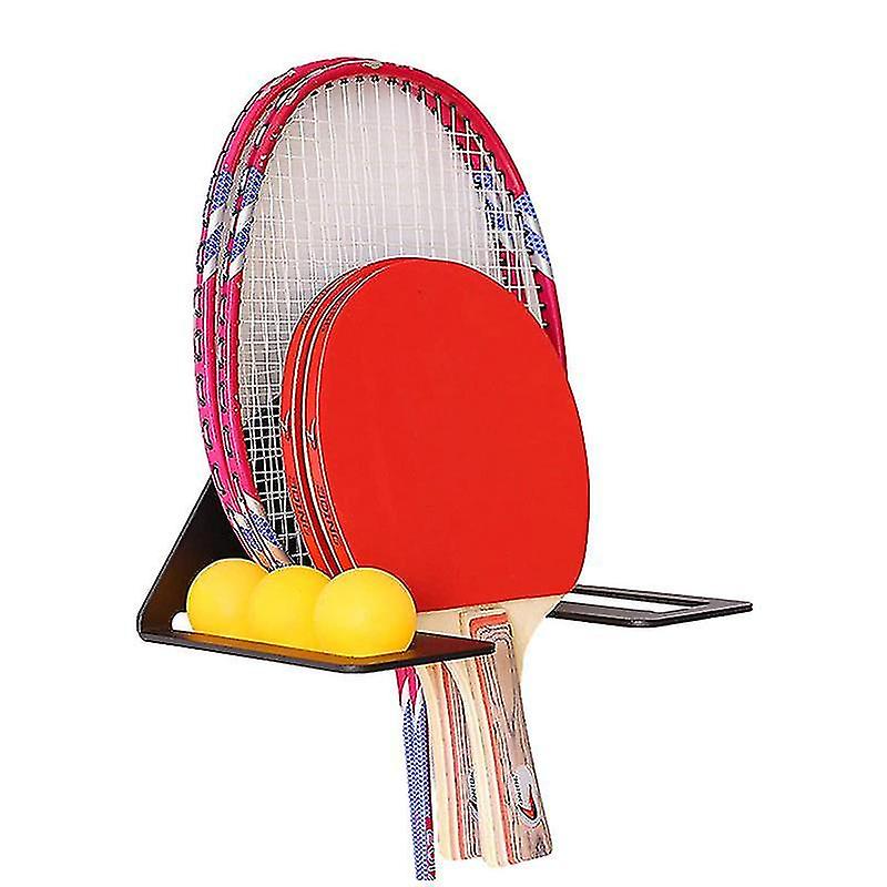 Wall-mounted table tennis and table tennis racket storage rack, which can also be used to store badminton rackets and other sports equipment. The black matte coating gives the shelf a sophisticated look and prevents the shelf from rusting. Perfect for your game room, home gym, or garage. Very easy to install with anchors and screws included. It has six balls and four rackets. Powder coated with a flat matte black finish and extra texture. The perfect complement to home game environments and athletic clubs. Properties: Name: Table tennis racket display stand Material: iron Dimensions: 24x11x13CM/9.44*4.33*5.11 IN Weight: 0.84kg Applicable scene: fitness equipment, table tennis Color: Black Product List: 1*Table tennis racket display stand