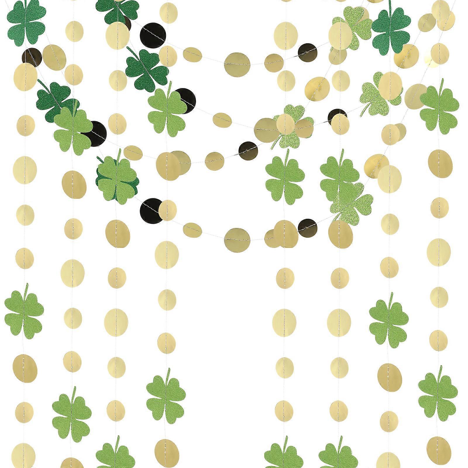 Patricks Day Accessories Garland Holiday Banners Four Leaves Circle Dots Green Hanging 4Pcs