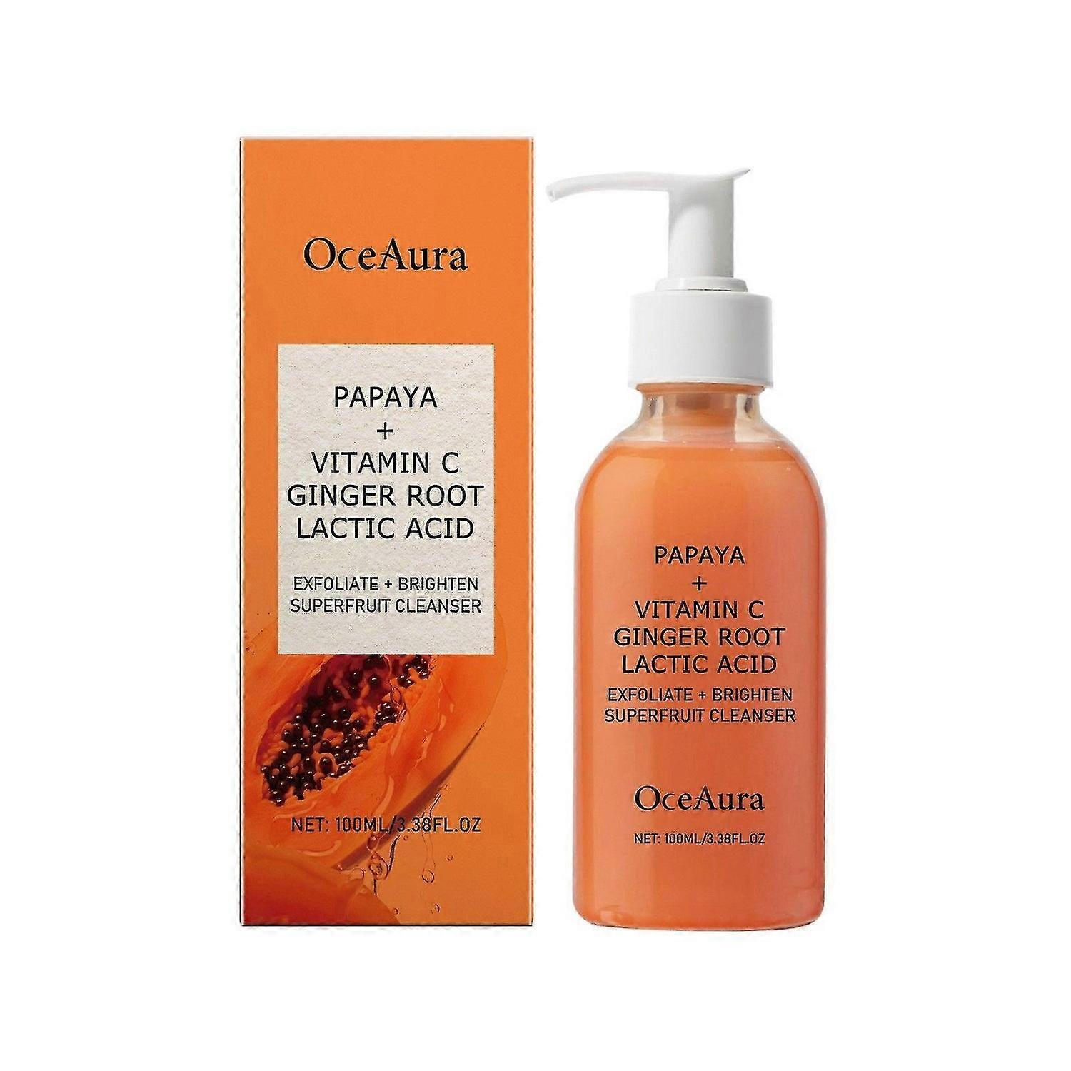 Papaya + Vitamin C Ginger Root Lactic Acid Exfoliating Cleanser, Gentle Daily Foam Facial Cleanser, Brighten & Exfoliating Cleanser, Moisturizing and