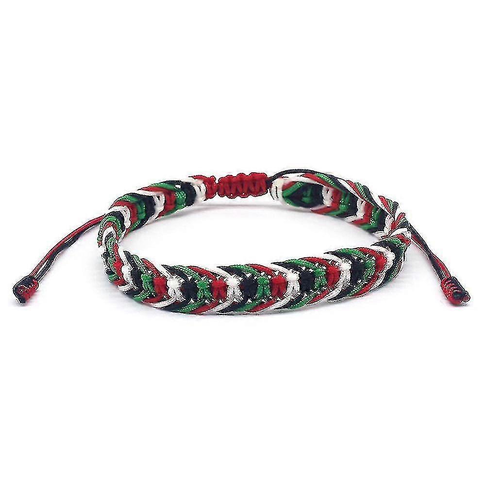 Product 1. Product Name: Palestinian handmade woven bracelet2. Product size: about 16+6cm(6.36+2.36in)3. Product style: hand knitting4. Product color: as shown in pictures5. Product material: ropeProduct features:1. Experience the rich Palestinian craftsmanship with our hand-woven Palestinian Bracelet, showcasing the intricate artistry and cultural heritage of the region.2. Each bracelet is meticulously crafted by skilled Palestinian artisans, using traditional weaving techniques passed down through generations.3. Made from high-quality materials, this bracelet features vibrant colors and patterns that reflect the unique Palestinian identity and spirit.4. The adjustable design ensures a comfortable and personalized fit, allowing you to showcase this beautiful piece of art with pride.5. By wearing our Palestinian Bracelet, you not only support the livelihoods of Palestinian artisans but also celebrate their cultural heritage and contribute to preserving their craft for future generations.Shipping includes:1 pc bracelet