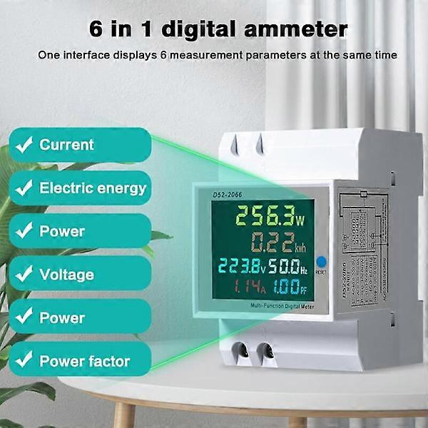 Power Meter, 100A 6 DIN Rail 220V, AC40-300V CT Integrated