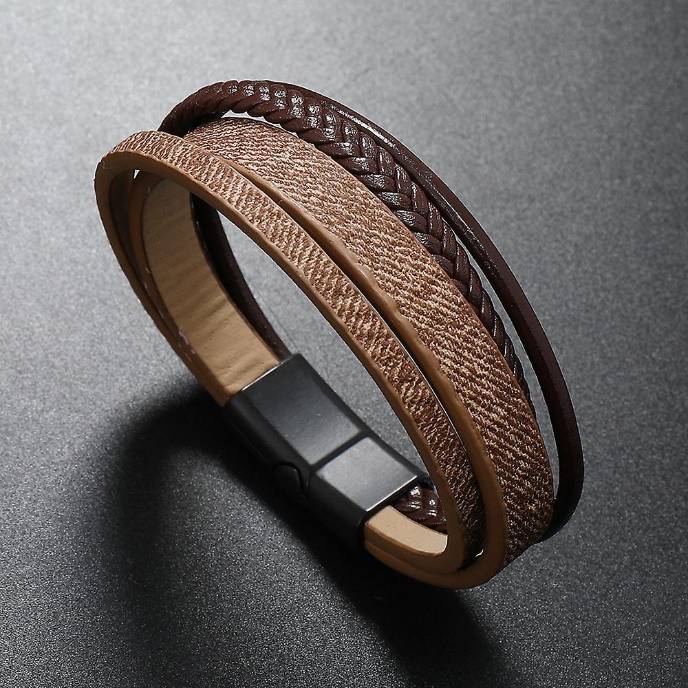 Punk Vintage Leather Bracelet Men New Men Woven Leather Bracelet With Magnetic Buckle And Multi-layer Wearing Men Bracelet
