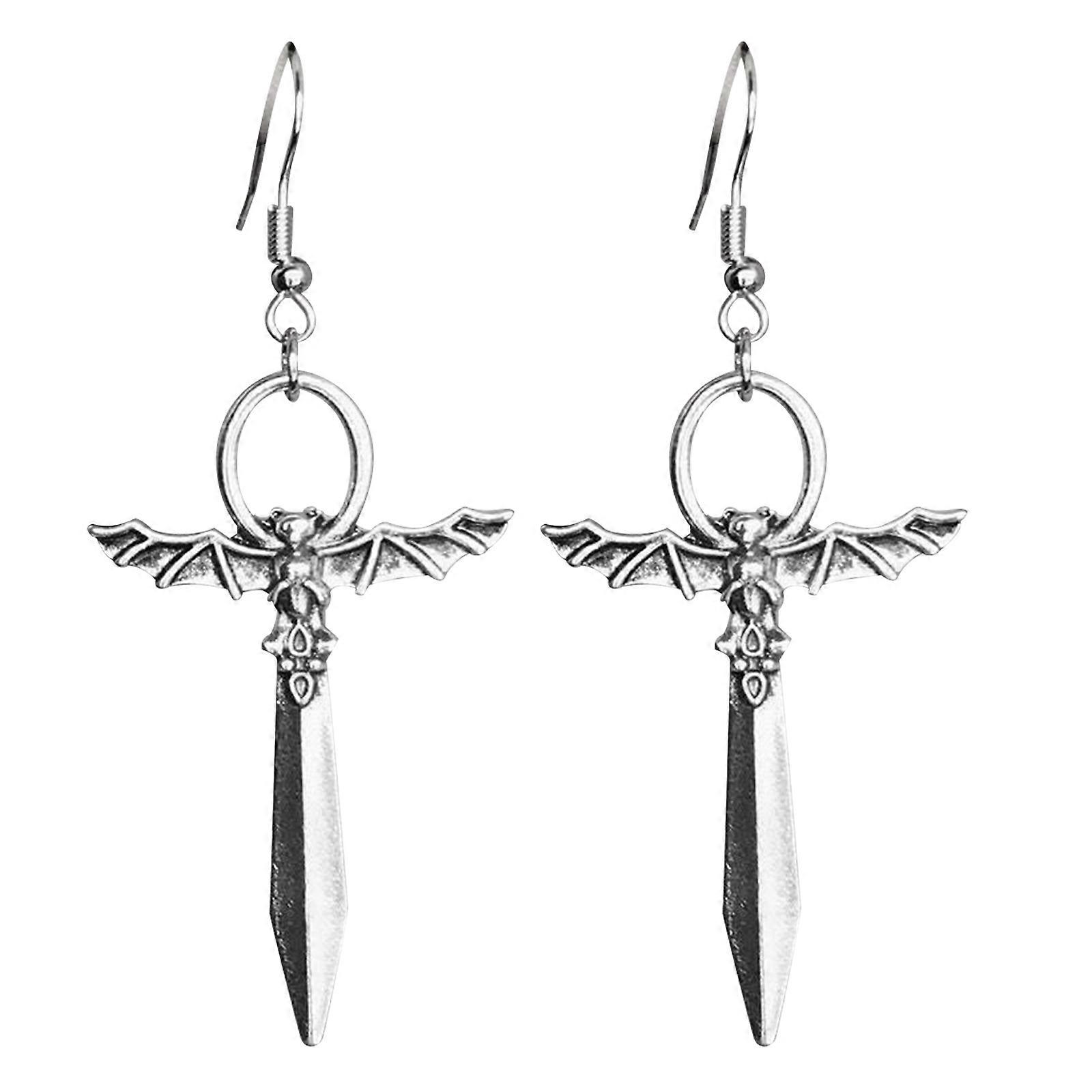 Punk Style Bat Swords Shape Dangle Earrings for Women/Men Versatile Cool Unisex Ear Accessories Vintage Jewelry Gift